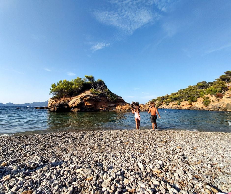 Una playa muy especial es la de Es Mal Pas que está formada por piedras redondeadas por la erosión del mar. Los niños disfrutan jugando con estas piedras y nadando hasta un pequeño islote que se encuentra a pocos metros de la orilla. Muy cerquita podéis encontrar el bar-restaurante 5 Océanos Chillout donde disfrutar de deliciosos cocteles y una extensa carta de comida fusión con un menú para niños muy variado. Es un bar precioso con espacios diferenciados de chillout repletos de colores, todo en un buen ambiente y buena música de fondo.