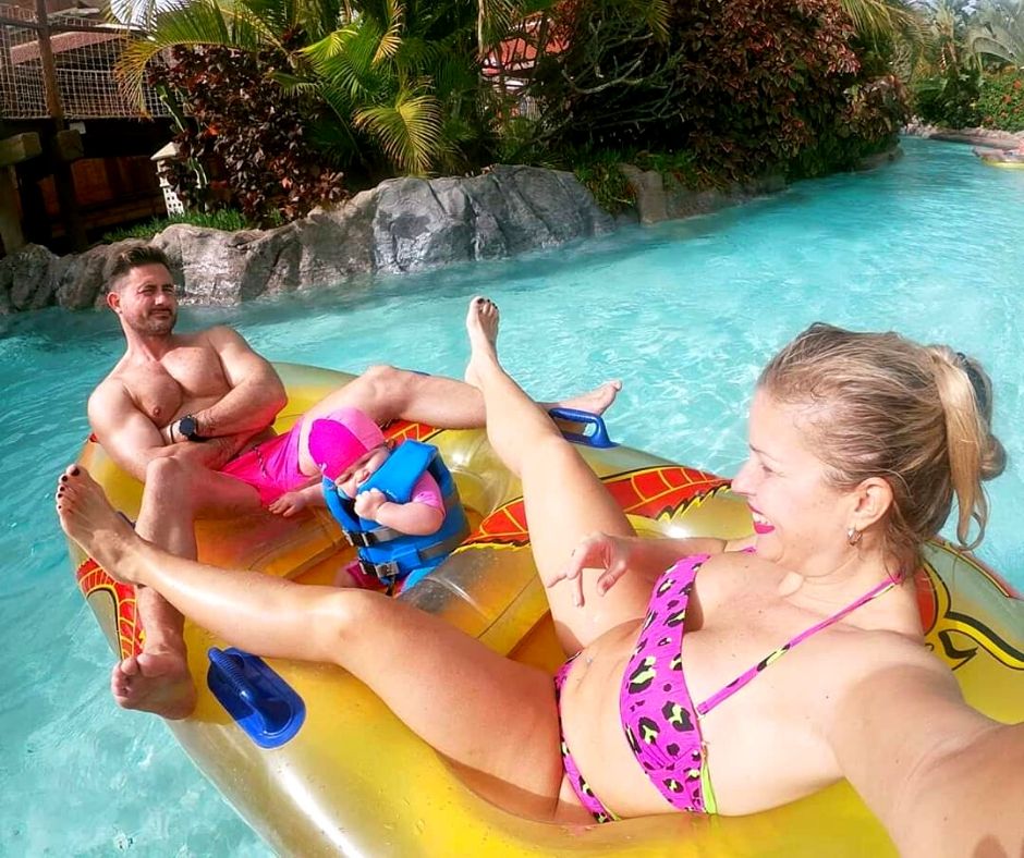Tenerife es un destino ideal para viajar en familia por su temperatura cálida todo el año, por el fácil turismo con los peques, por sus peculiares playas, por su tradicional comida y sobre todo por sus atracciones, la cual destaco el Sian Park (el mejor parque acuático del mundo por sexta vez consecutiva) en el que mostramos felicidad en la foto.
