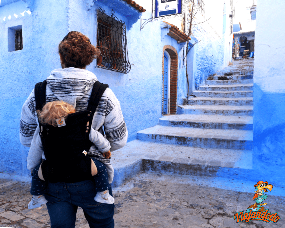Si en Fez no es recomendamos el cochecito, en Chefchaouen, menos. La ciudad azul se encuentra en medio de las montañas. Por lo que su Medina está llena de calles en cuesta y escalonadas. La visita se realiza subiendo y bajando todo el tiempo. Y el suelo tampoco es que sea exactamente plano.