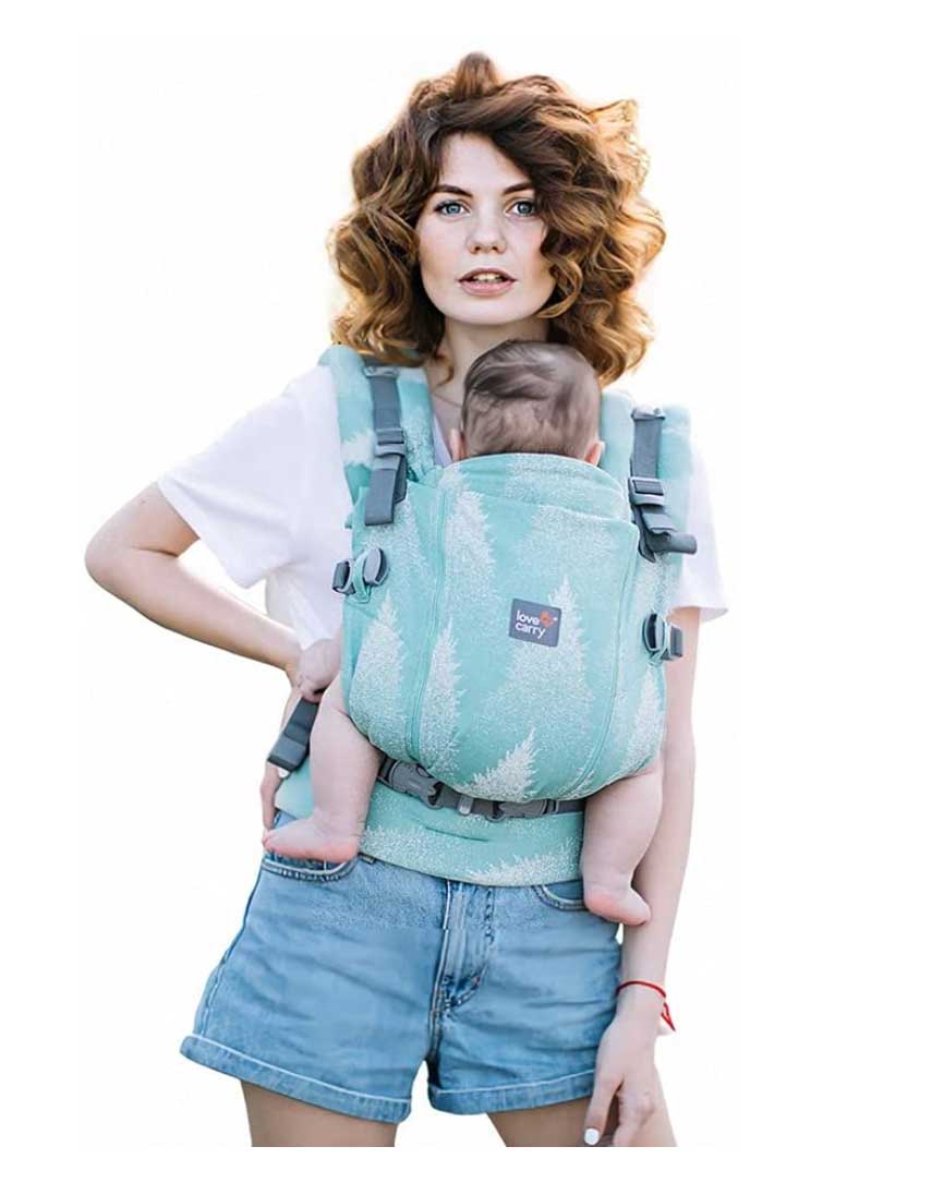 Es apta desde el nacimiento hasta los 2-3 años (de 3,5 kg hasta los 15 kg), está hecha a base de algodón orgánico certificado y garantiza la posición ergonómica del bebé (en forma de M).